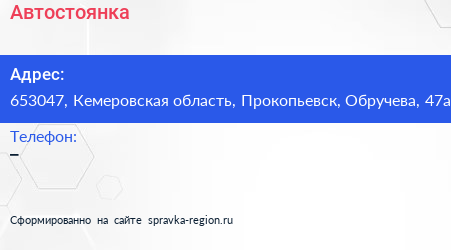 Автостоянка по адресу 653047, Кемеровская область, Прокопьевск, Обручева, 47а в дальнейшем Организация, размещена в следующих категориях: