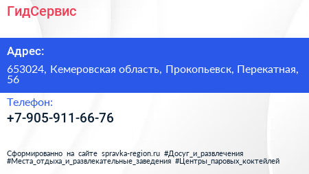 ГидСервис по адресу 653024, Кемеровская область, Прокопьевск, Перекатная, 56 в дальнейшем Организация, размещена в следующих категориях: