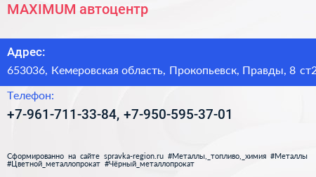 MAXIMUM, автоцентр по адресу 653036, Кемеровская область, Прокопьевск, Правды, 8 ст2 в дальнейшем Организация, размещена в следующих категориях: