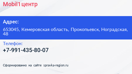 Mobil1, центр по адресу 653045, Кемеровская область, Прокопьевск, Ноградская, 48 в дальнейшем Организация, размещена в следующих категориях: