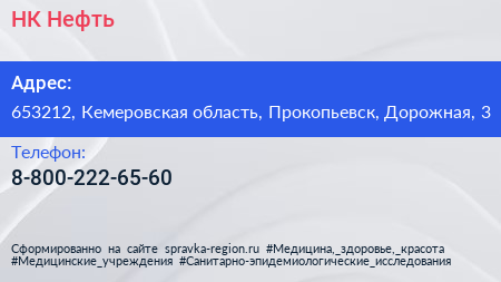 НК-Нефть по адресу 653212, Кемеровская область, Прокопьевск, Дорожная, 3 в дальнейшем Организация, размещена в следующих категориях: