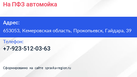 На ПФЗ, автомойка по адресу 653053, Кемеровская область, Прокопьевск, Гайдара, 39 в дальнейшем Организация, размещена в следующих категориях:
