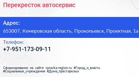 Перекресток, автосервис по адресу 653007, Кемеровская область, Прокопьевск, Проектная, 1а в дальнейшем Организация, размещена в следующих категориях: