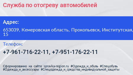 Служба по отогреву автомобилей по адресу 653039, Кемеровская область, Прокопьевск, Институтская, 15 в дальнейшем Организация, размещена в следующих категориях:
