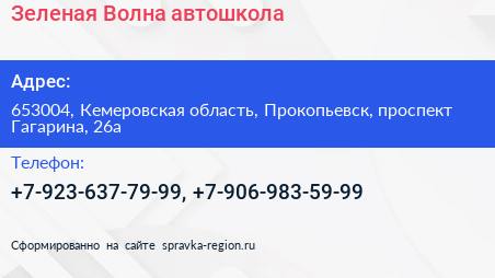 Зеленая Волна, автошкола по адресу 653004, Кемеровская область, Прокопьевск, проспект Гагарина, 26а в дальнейшем Организация, размещена в следующих категориях: