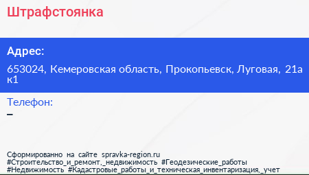 Штрафстоянка по адресу 653024, Кемеровская область, Прокопьевск, Луговая, 21а к1 в дальнейшем Организация, размещена в следующих категориях: