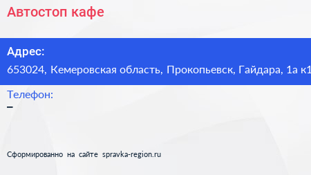 Автостоп, кафе по адресу 653024, Кемеровская область, Прокопьевск, Гайдара, 1а к1 в дальнейшем Организация, размещена в следующих категориях: