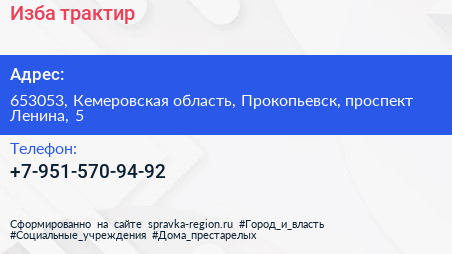 Изба, трактир по адресу 653053, Кемеровская область, Прокопьевск, проспект Ленина, 5 в дальнейшем Организация, размещена в следующих категориях: