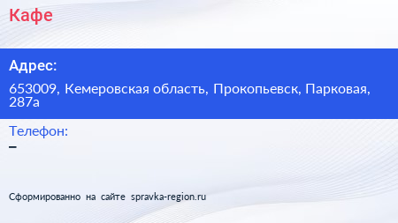 Кафе по адресу 653009, Кемеровская область, Прокопьевск, Парковая, 287а в дальнейшем Организация, размещена в следующих категориях: