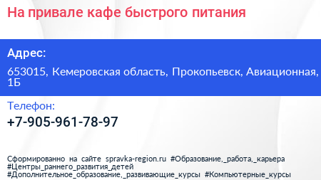 На привале, кафе быстрого питания по адресу 653015, Кемеровская область, Прокопьевск, Авиационная, 1Б в дальнейшем Организация, размещена в следующих категориях:
