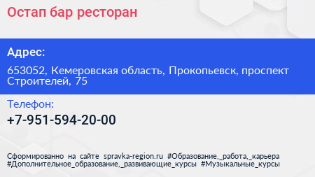 Остап, бар-ресторан по адресу 653052, Кемеровская область, Прокопьевск, проспект Строителей, 75 в дальнейшем Организация, размещена в следующих категориях: