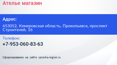 Ателье-магазин по адресу 653052, Кемеровская область, Прокопьевск, проспект Строителей, 16 в дальнейшем Организация, размещена в следующих категориях: