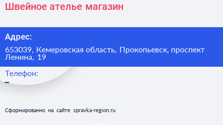 Швейное ателье-магазин по адресу 653039, Кемеровская область, Прокопьевск, проспект Ленина, 19 в дальнейшем Организация, размещена в следующих категориях: