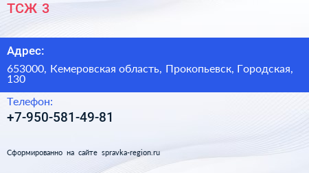 ТСЖ №3 по адресу 653000, Кемеровская область, Прокопьевск, Городская, 130 в дальнейшем Организация, размещена в следующих категориях: