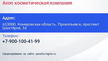 Avon, косметическая компания по адресу 653000, Кемеровская область, Прокопьевск, проспект Шахтёров, 16 в дальнейшем Организация, размещена в следующих категориях: