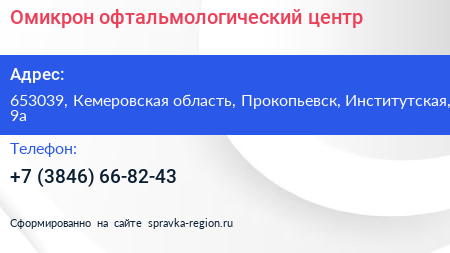 Омикрон, офтальмологический центр по адресу 653039, Кемеровская область, Прокопьевск, Институтская, 9а в дальнейшем Организация, размещена в следующих категориях: