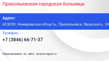 Прокопьевская городская больница по адресу 653039, Кемеровская область, Прокопьевск, Яворского, 24 в дальнейшем Организация, размещена в следующих категориях: