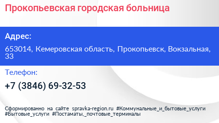 Прокопьевская городская больница по адресу 653014, Кемеровская область, Прокопьевск, Вокзальная, 33 в дальнейшем Организация, размещена в следующих категориях: