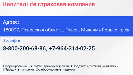 КапиталLife, страховая компания по адресу 180007, Псковская область, Псков, Максима Горького, 6а в дальнейшем Организация, размещена в следующих категориях: