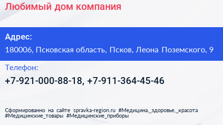 Любимый дом, компания по адресу 180006, Псковская область, Псков, Леона Поземского, 9 в дальнейшем Организация, размещена в следующих категориях: