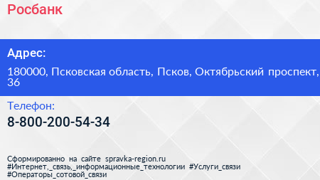 Росбанк по адресу 180000, Псковская область, Псков, Октябрьский проспект, 36 в дальнейшем Организация, размещена в следующих категориях: