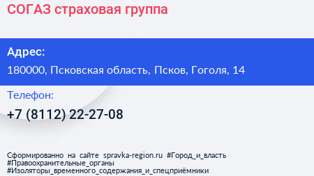 СОГАЗ, страховая группа по адресу 180000, Псковская область, Псков, Гоголя, 14 в дальнейшем Организация, размещена в следующих категориях: