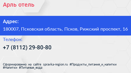 Арль, отель по адресу 180007, Псковская область, Псков, Рижский проспект, 16 в дальнейшем Организация, размещена в следующих категориях: