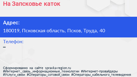На Запсковье, каток по адресу 180019, Псковская область, Псков, Труда, 40 в дальнейшем Организация, размещена в следующих категориях: