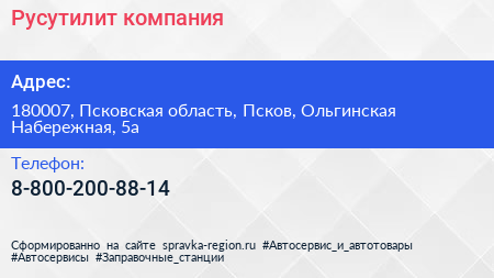 Русутилит, компания по адресу 180007, Псковская область, Псков, Ольгинская Набережная, 5а в дальнейшем Организация, размещена в следующих категориях: