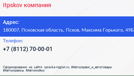 Itpskov, компания по адресу 180007, Псковская область, Псков, Максима Горького, 49Б в дальнейшем Организация, размещена в следующих категориях: