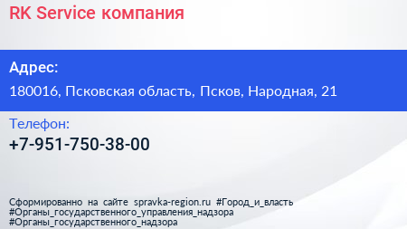 RK Service, компания по адресу 180016, Псковская область, Псков, Народная, 21 в дальнейшем Организация, размещена в следующих категориях:
