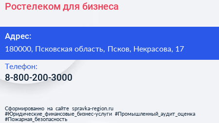 Ростелеком для бизнеса по адресу 180000, Псковская область, Псков, Некрасова, 17 в дальнейшем Организация, размещена в следующих категориях: