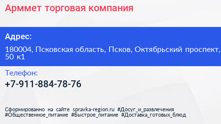 Арммет, торговая компания по адресу 180004, Псковская область, Псков, Октябрьский проспект, 50 к1 в дальнейшем Организация, размещена в следующих категориях: