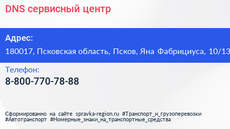 DNS, сервисный центр по адресу 180017, Псковская область, Псков, Яна Фабрициуса, 10/13 в дальнейшем Организация, размещена в следующих категориях:
