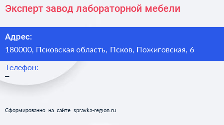 Эксперт, завод лабораторной мебели по адресу 180000, Псковская область, Псков, Пожиговская, 6 в дальнейшем Организация, размещена в следующих категориях: