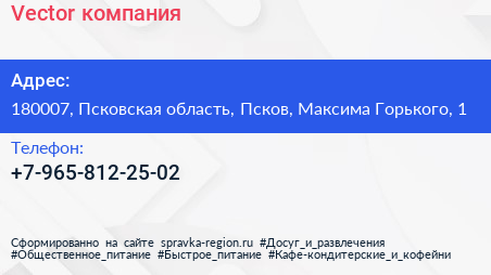 Vector, компания по адресу 180007, Псковская область, Псков, Максима Горького, 1 в дальнейшем Организация, размещена в следующих категориях: