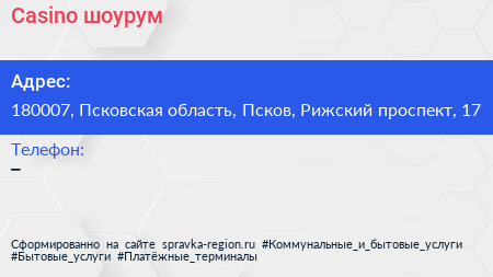 Casino, шоурум по адресу 180007, Псковская область, Псков, Рижский проспект, 17 в дальнейшем Организация, размещена в следующих категориях: