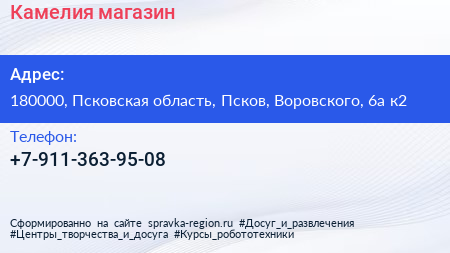 Камелия, магазин по адресу 180000, Псковская область, Псков, Воровского, 6а к2 в дальнейшем Организация, размещена в следующих категориях: