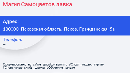 Магия Самоцветов, лавка по адресу 180000, Псковская область, Псков, Гражданская, 5а в дальнейшем Организация, размещена в следующих категориях:
