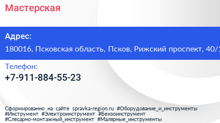 Мастерская по адресу 180016, Псковская область, Псков, Рижский проспект, 40/1 в дальнейшем Организация, размещена в следующих категориях: