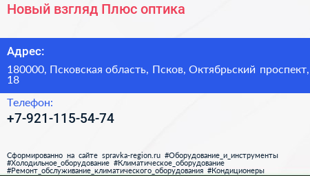 Новый взгляд Плюс, оптика по адресу 180000, Псковская область, Псков, Октябрьский проспект, 18 в дальнейшем Организация, размещена в следующих категориях: