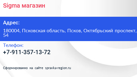 Sigma, магазин по адресу 180004, Псковская область, Псков, Октябрьский проспект, 54 в дальнейшем Организация, размещена в следующих категориях: