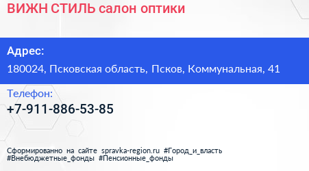 ВИЖН СТИЛЬ, салон оптики по адресу 180024, Псковская область, Псков, Коммунальная, 41 в дальнейшем Организация, размещена в следующих категориях: