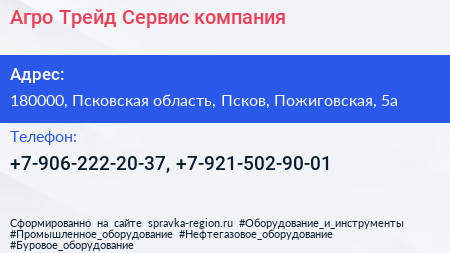 Агро Трейд Сервис, компания по адресу 180000, Псковская область, Псков, Пожиговская, 5а в дальнейшем Организация, размещена в следующих категориях:
