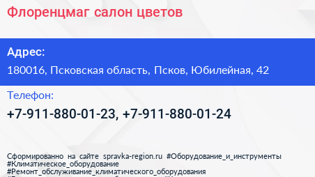 Флоренцмаг, салон цветов по адресу 180016, Псковская область, Псков, Юбилейная, 42 в дальнейшем Организация, размещена в следующих категориях: