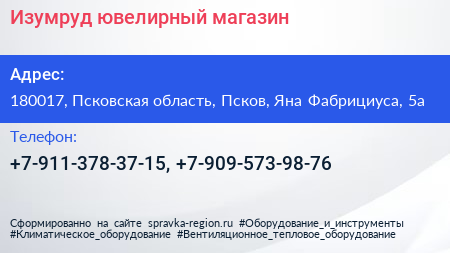 Изумруд, ювелирный магазин по адресу 180017, Псковская область, Псков, Яна Фабрициуса, 5а в дальнейшем Организация, размещена в следующих категориях: