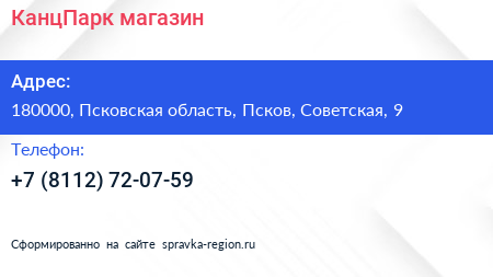 КанцПарк, магазин по адресу 180000, Псковская область, Псков, Советская, 9 в дальнейшем Организация, размещена в следующих категориях: