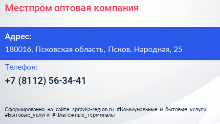 Местпром, оптовая компания по адресу 180016, Псковская область, Псков, Народная, 25 в дальнейшем Организация, размещена в следующих категориях:
