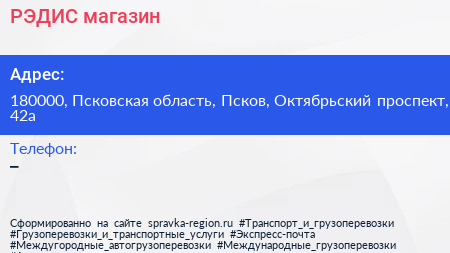 РЭДИС, магазин по адресу 180000, Псковская область, Псков, Октябрьский проспект, 42а в дальнейшем Организация, размещена в следующих категориях: