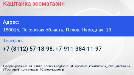 Каштанка, зоомагазин по адресу 180016, Псковская область, Псков, Народная, 18 в дальнейшем Организация, размещена в следующих категориях: